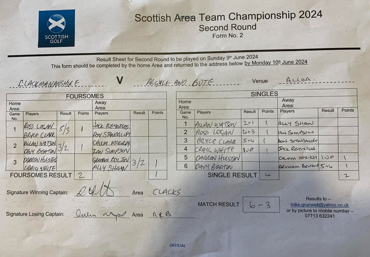 The area would like to thank Taynuilt Golf Club for hosting the event and commend them for it’s fine condition.
