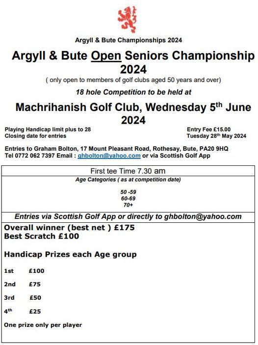 Next Area action is the Seniors at machrihanish this coming Wednesday, followed by the Handicap Championship at Rothesay on Sunday 29th June.
