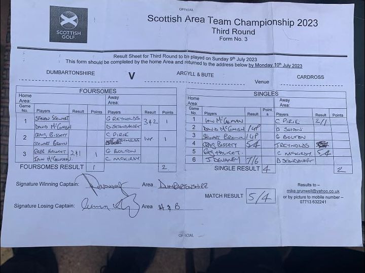 The six man teams next fixture is on 13th July against dumbartonshire at Dumbarton GC